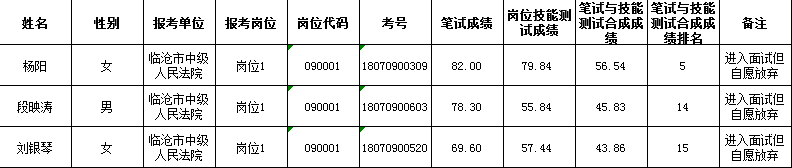 臨滄市法院系統(tǒng)2018招聘聘用制書記員放棄面試人員及遞補人員公告