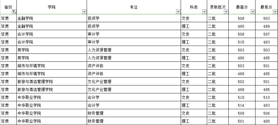 云南財(cái)經(jīng)大學(xué)2018年甘肅省錄取情況一覽表