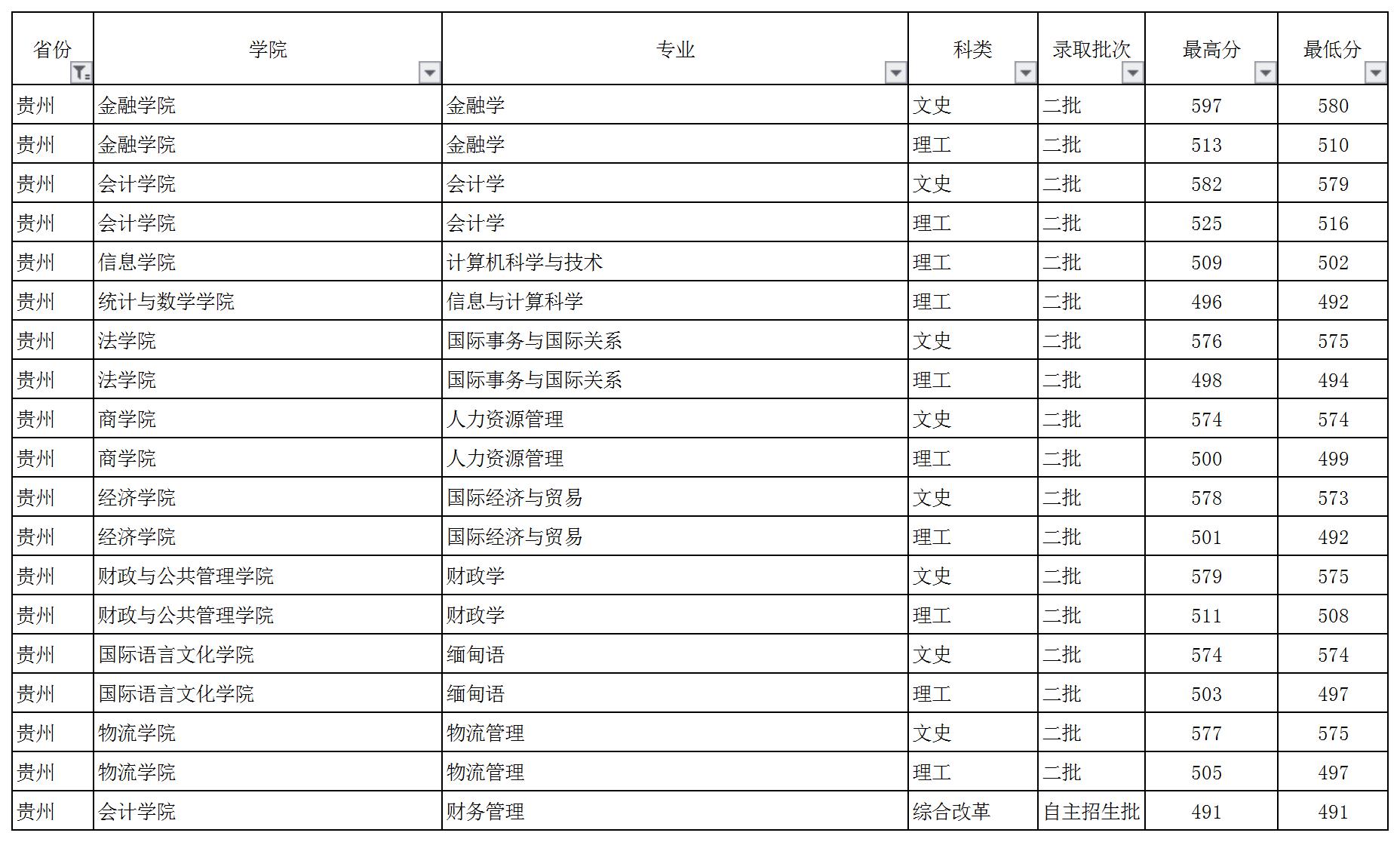 云南財(cái)經(jīng)大學(xué)2018年貴州省錄取情況一覽表