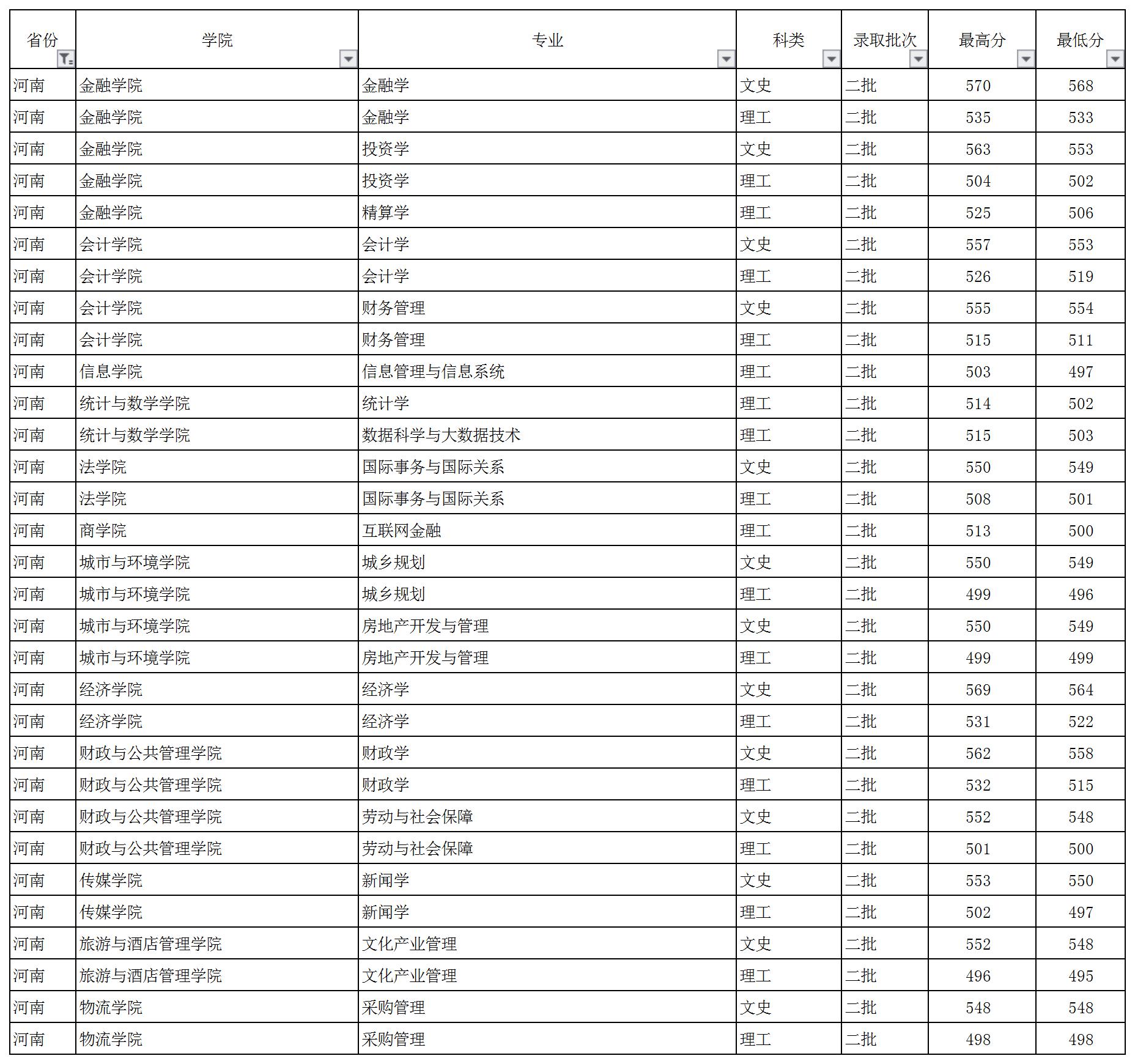 云南財(cái)經(jīng)大學(xué)2018年河南省錄取情況一覽表