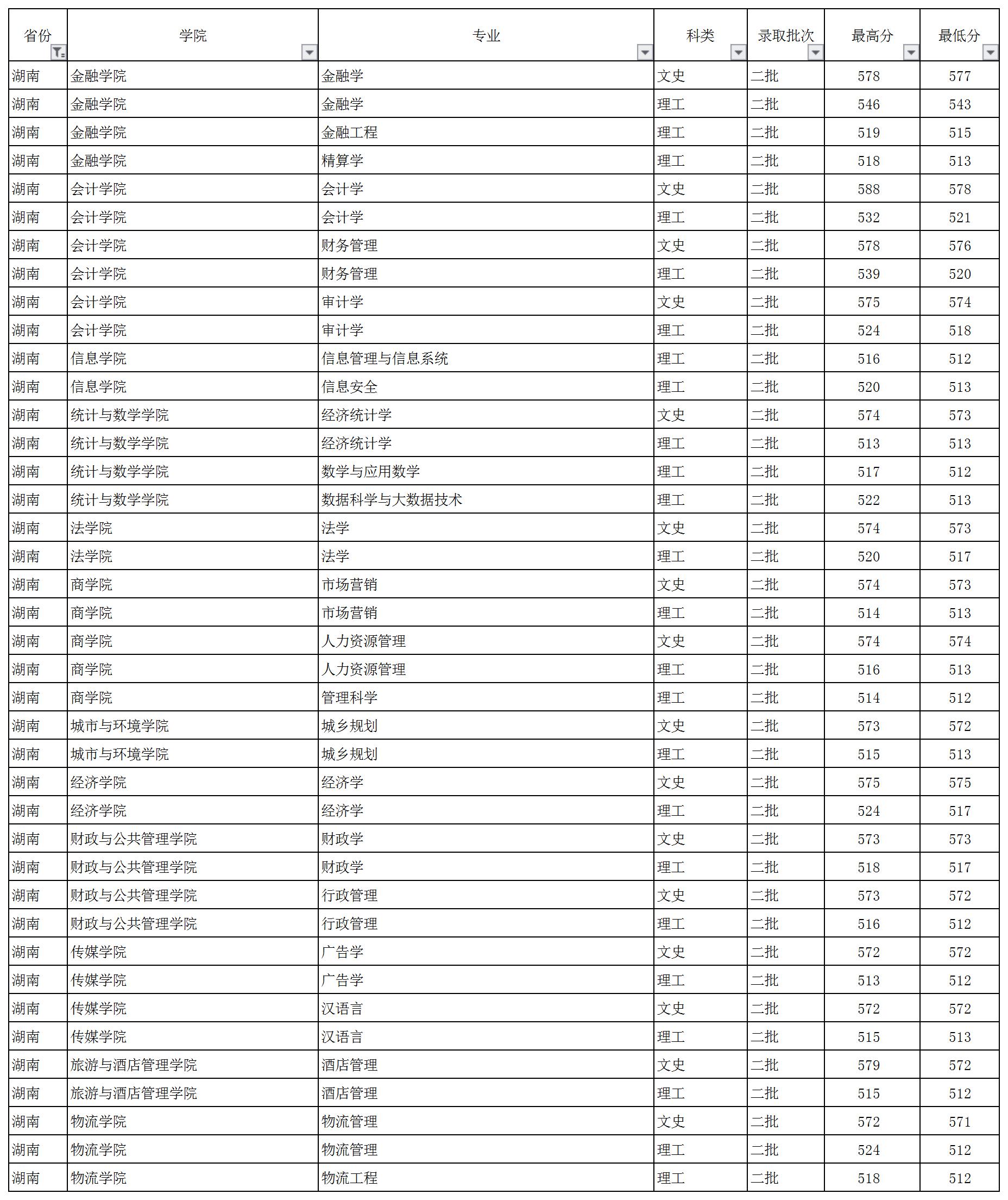 云南財(cái)經(jīng)大學(xué)2018年湖南省錄取情況一覽