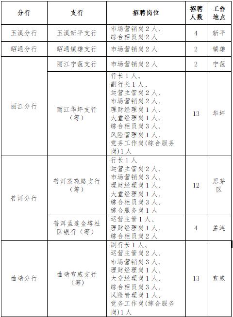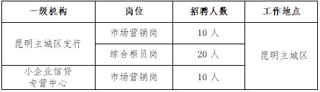| 4 | 昆明主城區(qū)支行崗位 | 昆明主城區(qū)支行、小企業(yè)信貸專營中心市場營銷崗 | 1.年齡40周歲(含)以下,全日制本科及以上學(xué)歷; |