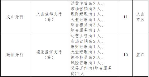 | 11 | 州市支行崗位 | 大堂經(jīng)理崗 | 1.年齡35周歲(含)以下,大學(xué)本科及以上學(xué)歷(縣域支行可放寬到專科); |