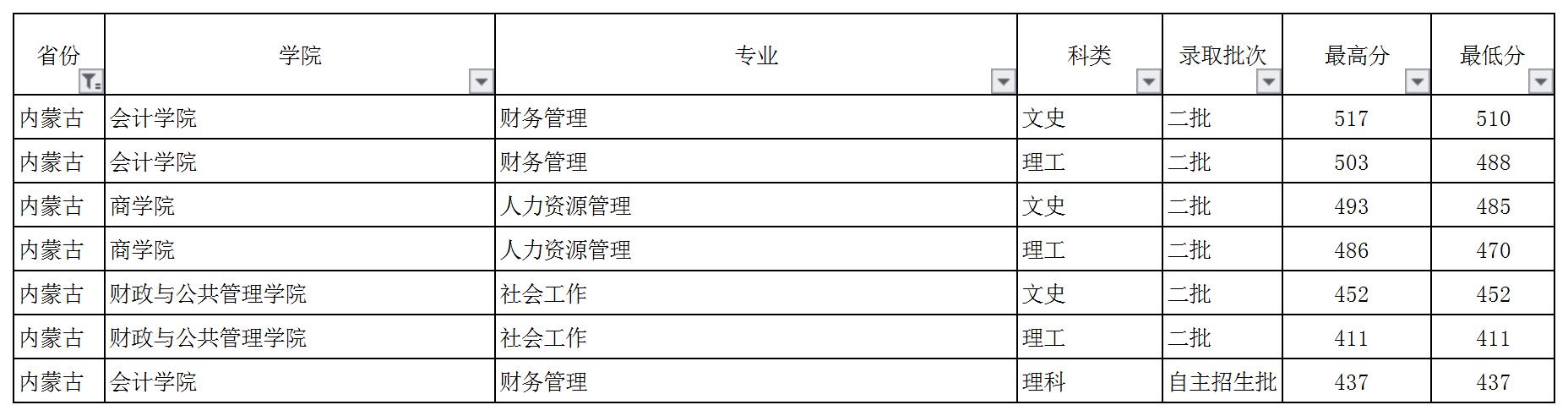 云南財(cái)經(jīng)大學(xué)2018年內(nèi)蒙古錄取情況一覽表