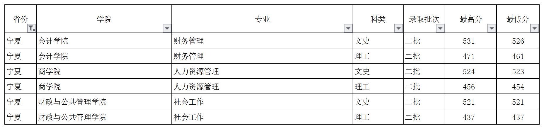 云南財(cái)經(jīng)大學(xué)2018年寧夏回族自治區(qū)錄取情況一覽表