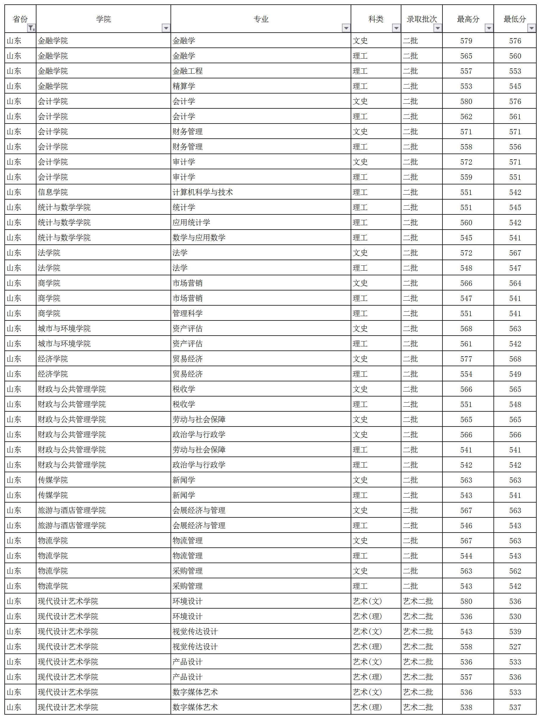 云南財(cái)經(jīng)大學(xué)2018年山東省錄取情況一覽表