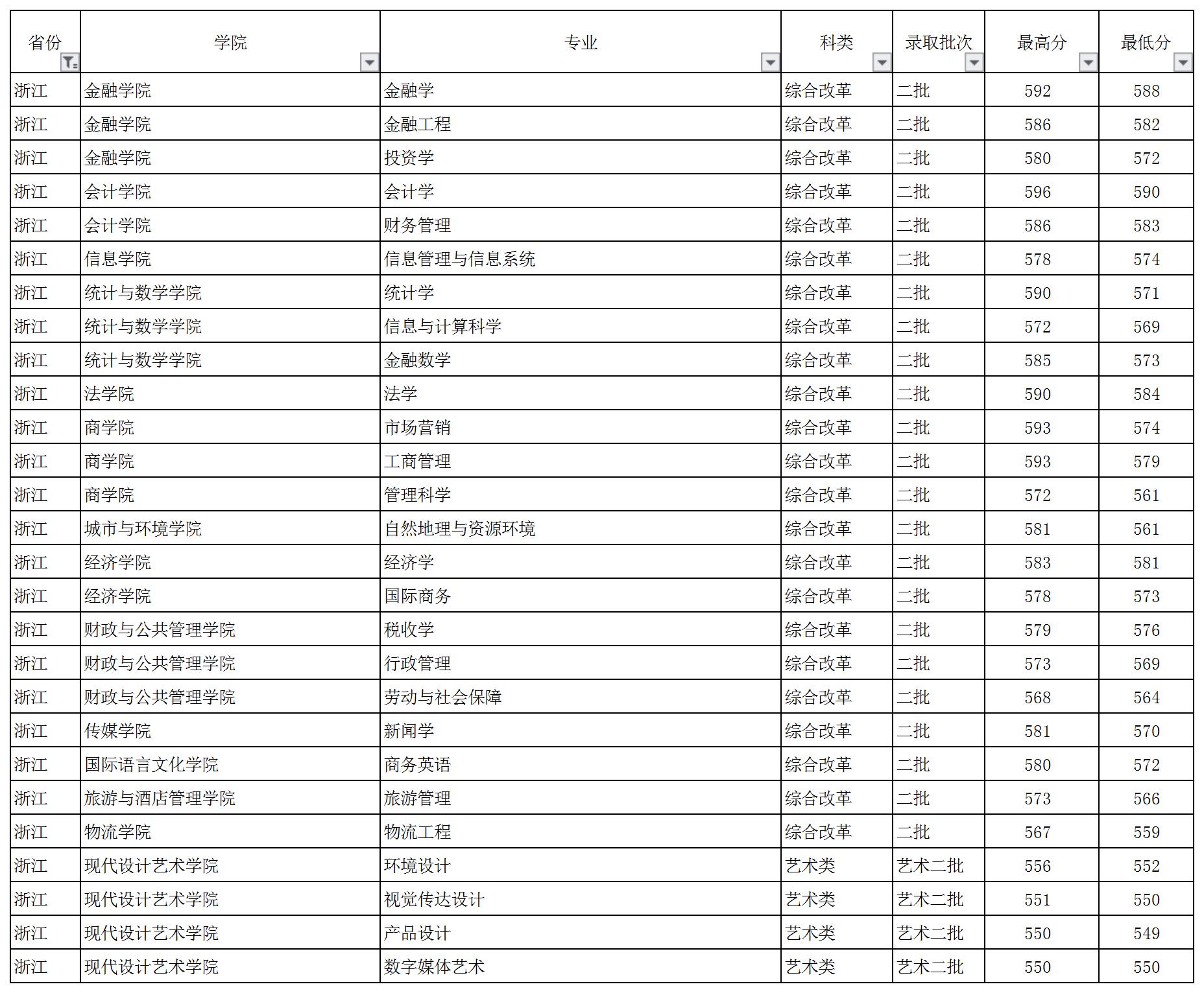 云南財(cái)經(jīng)大學(xué)2018年浙江省錄取情況一覽表
