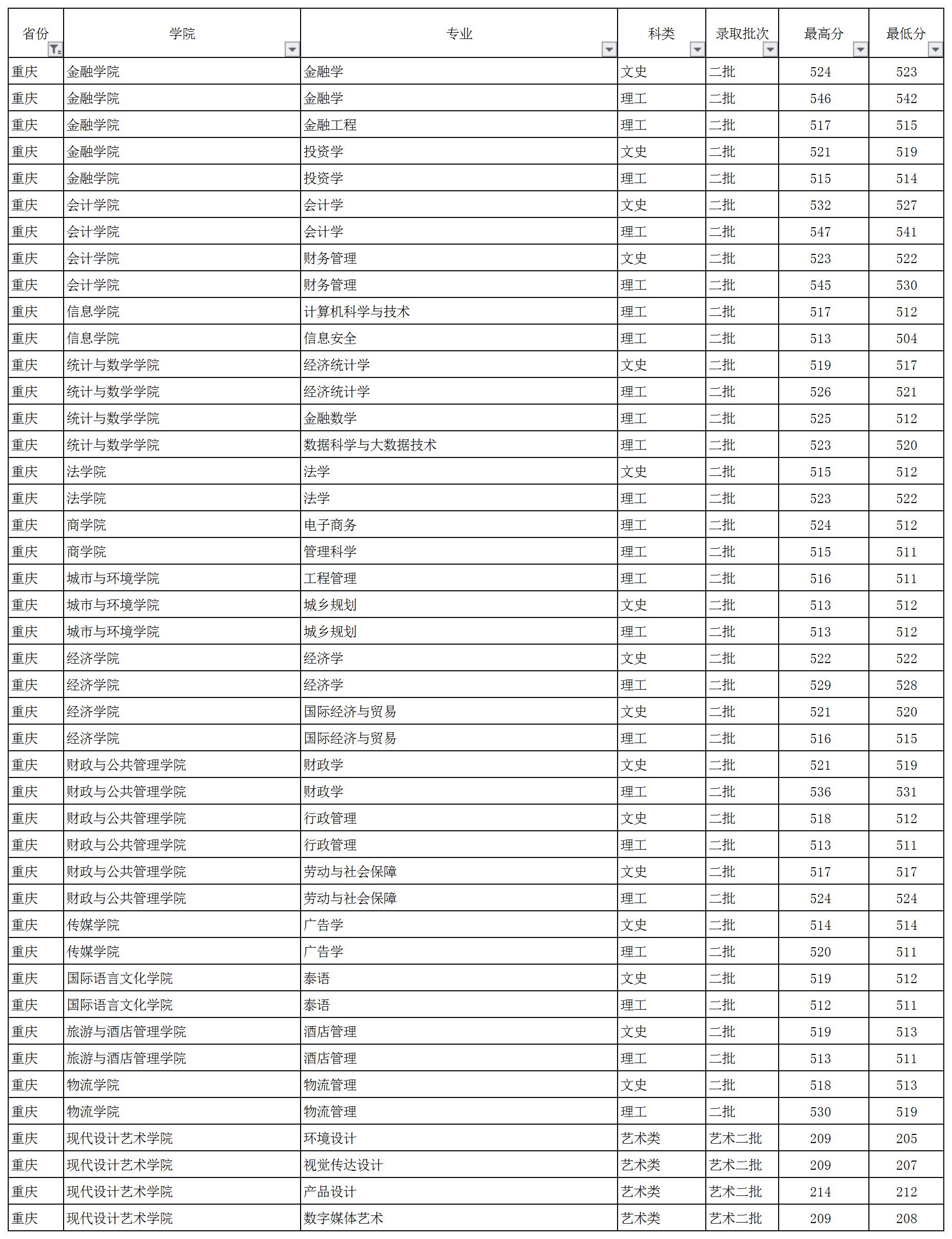 云南財(cái)經(jīng)大學(xué)2018年重慶市錄取情況一覽表