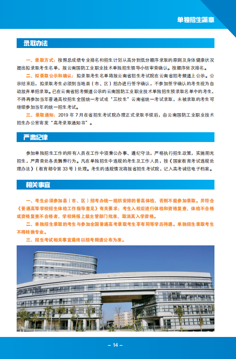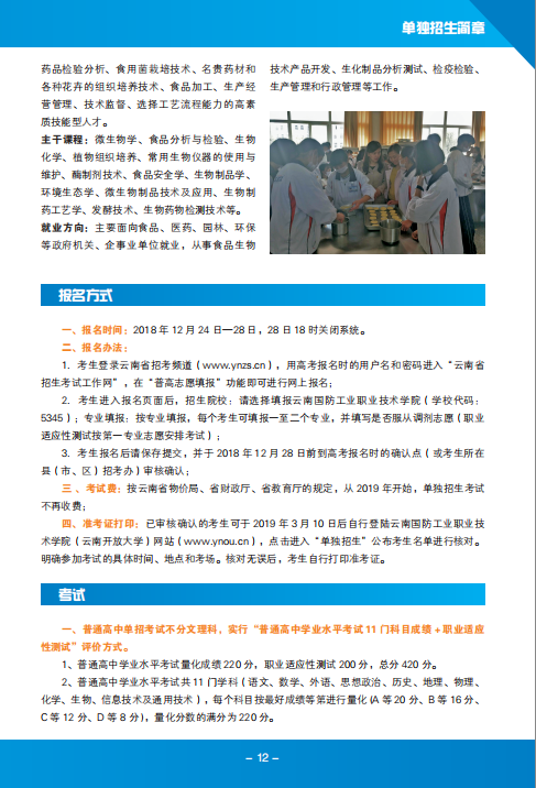 云南國防工業(yè)職業(yè)技術(shù)學(xué)院2019年單獨(dú)招生簡章