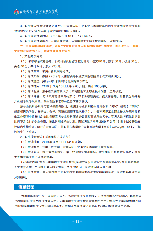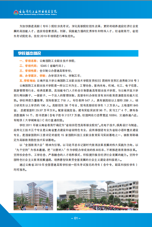 云南國防工業(yè)職業(yè)技術(shù)學(xué)院2019年高職