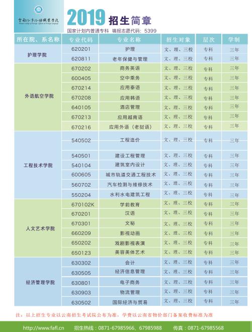云南外事外語職業(yè)學(xué)院2019年招生簡章