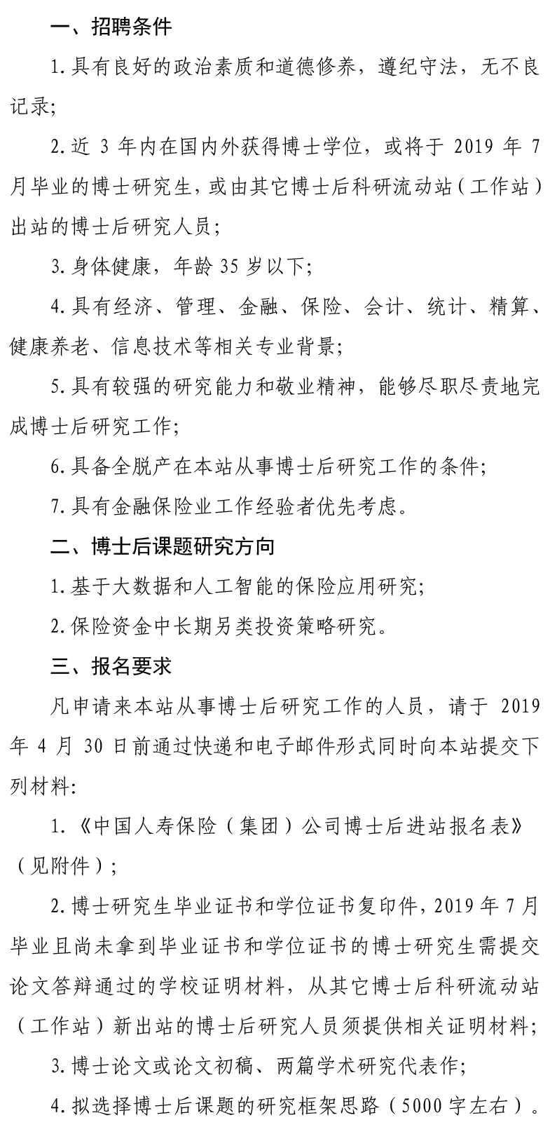 請下載相關(guān)附件:附件:中國人壽保險(集團)公司博士后進站報名表.docx