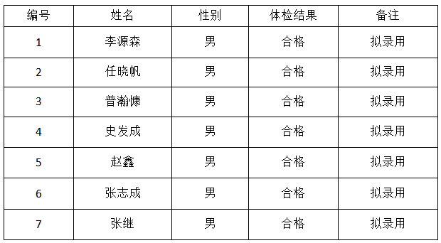 公開招聘通??h安全生產(chǎn)監(jiān)督管理局輔助服務(wù)工作人員體檢環(huán)節(jié)于2019年1月28日,按公告要求條件完成,現(xiàn)將擬錄用人員名單公示,公示期為7個(gè)工作日。公示期間,如對人選有異議,請及時(shí)向云南辰信人力資源管理咨詢有限公司通海分公司反映。