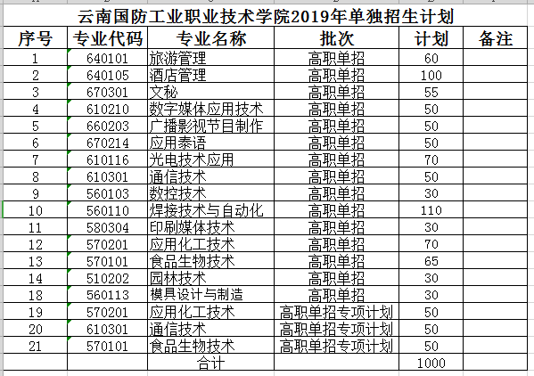 云南國(guó)防工業(yè)職業(yè)技術(shù)學(xué)院2019年單獨(dú)招生實(shí)施方案