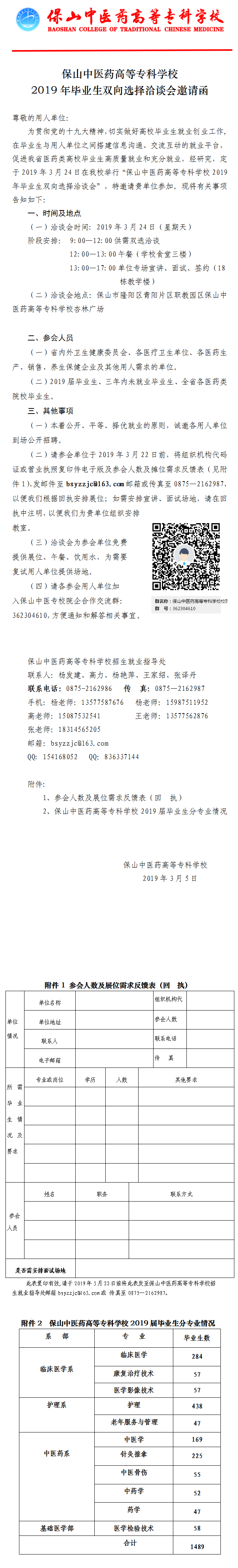 保中醫(yī)專2019年畢業(yè)生雙向選擇洽談會邀請函