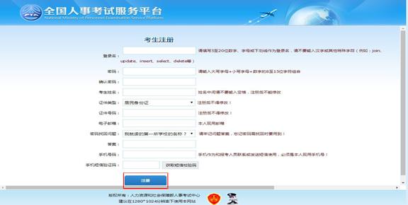 點(diǎn)擊“注冊”按鈕,進(jìn)入考生注冊頁面,如下圖所示: