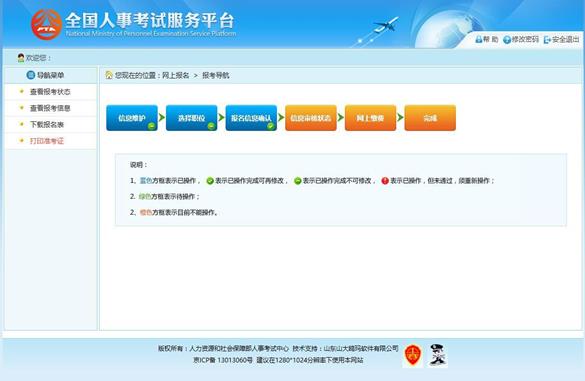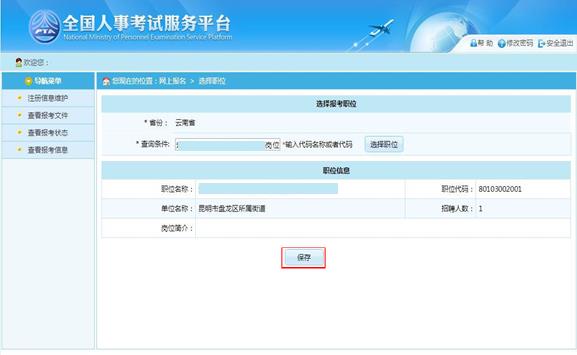 選擇相應(yīng)的職位,點(diǎn)擊“保存”按鈕,提示保存成功,跳轉(zhuǎn)到報(bào)考流程頁面,如下圖所示: