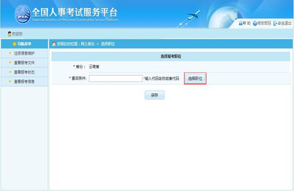 點(diǎn)擊“選擇職位”選項(xiàng),可以跳轉(zhuǎn)到選擇報(bào)考職位界面,如下圖所示: