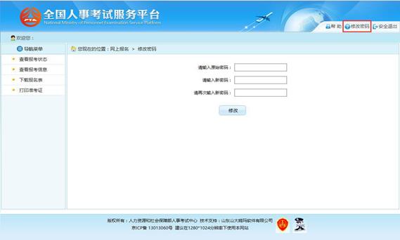 在該界面可以對考生的登錄密碼進(jìn)行修改。