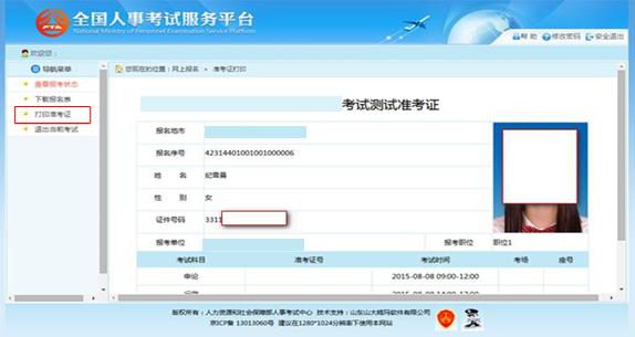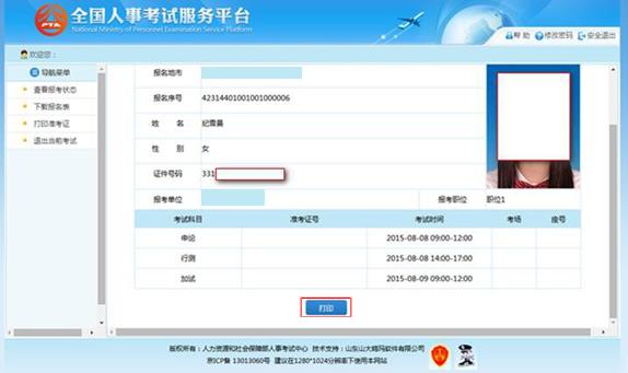 1.2.7.3 準(zhǔn)考證打印