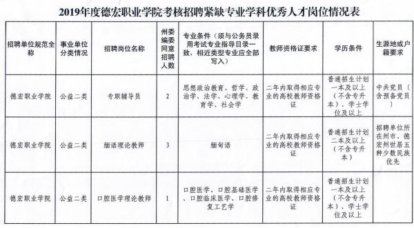 德宏職業(yè)學(xué)院2019年考核“選優(yōu)”招聘教師公告
