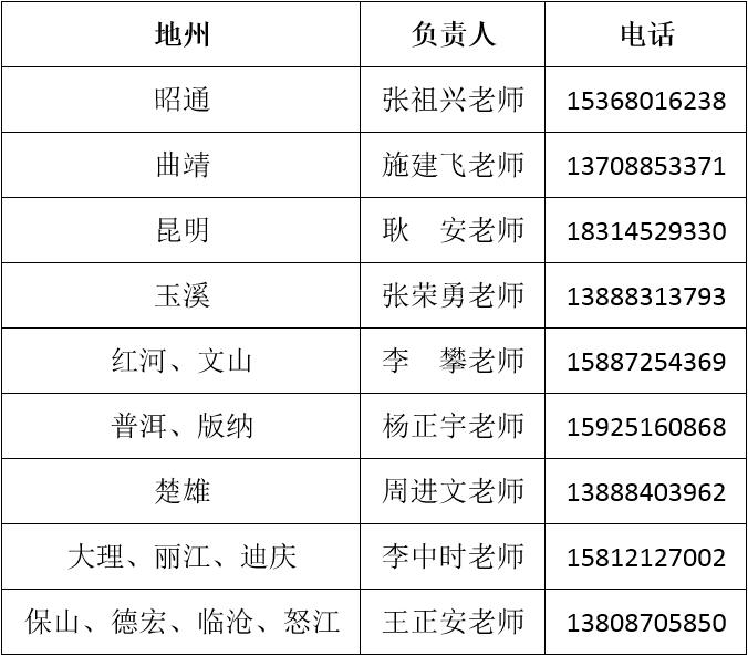 五、各地州招生負(fù)責(zé)人聯(lián)系電話