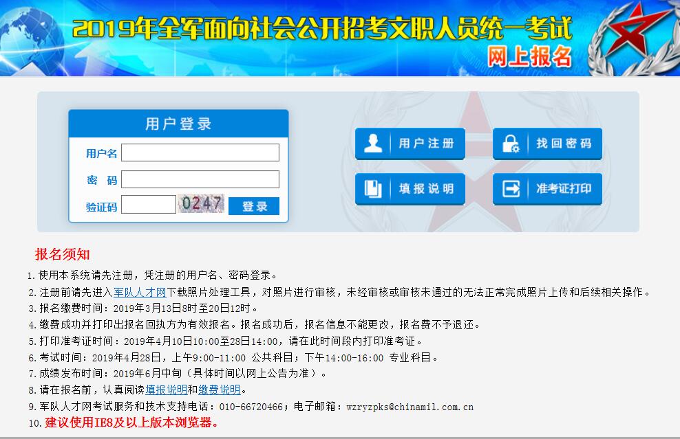 9.軍隊(duì)人才網(wǎng)考試服務(wù)和技術(shù)支持電話:010-66720466;電子郵箱:wzryzpks@chinamil.com.cn