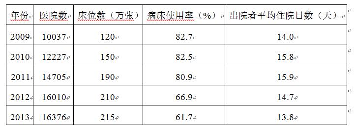 2009~2013 年某地區(qū)醫(yī)院病床使用相關情況統(tǒng)計表