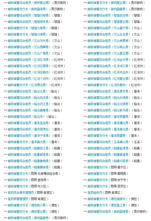 (三)玉溪分公司:郵政儲(chǔ)蓄綜合柜員崗2名(峨山縣2名)。