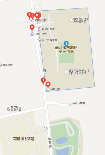 5、古城區(qū)祥和學(xué)校(地址:麗江市古城區(qū)玉雪大道365號(中石化加油站南面道路向東20米))
