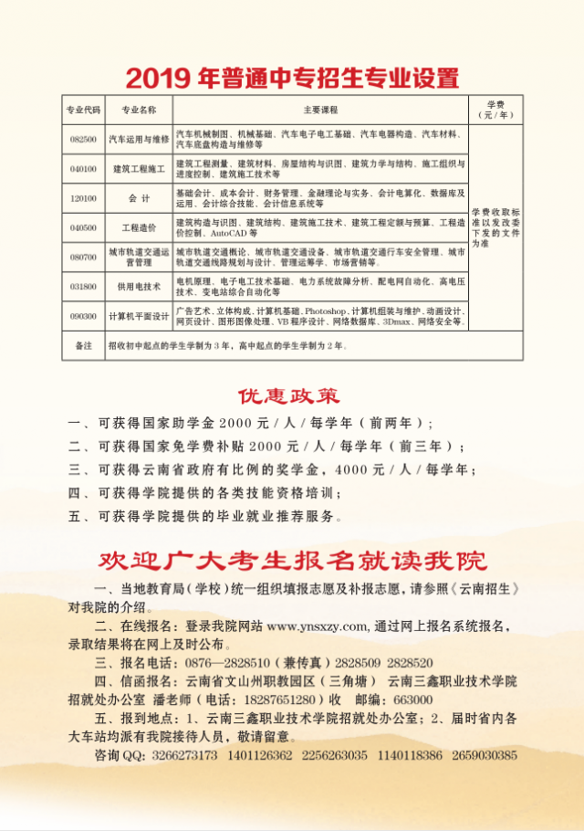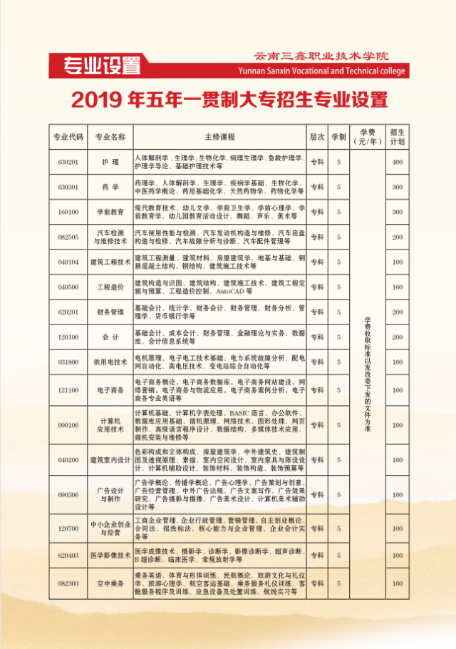 云南三鑫職業(yè)技術(shù)學(xué)院2019年五年制大專招生簡(jiǎn)章
