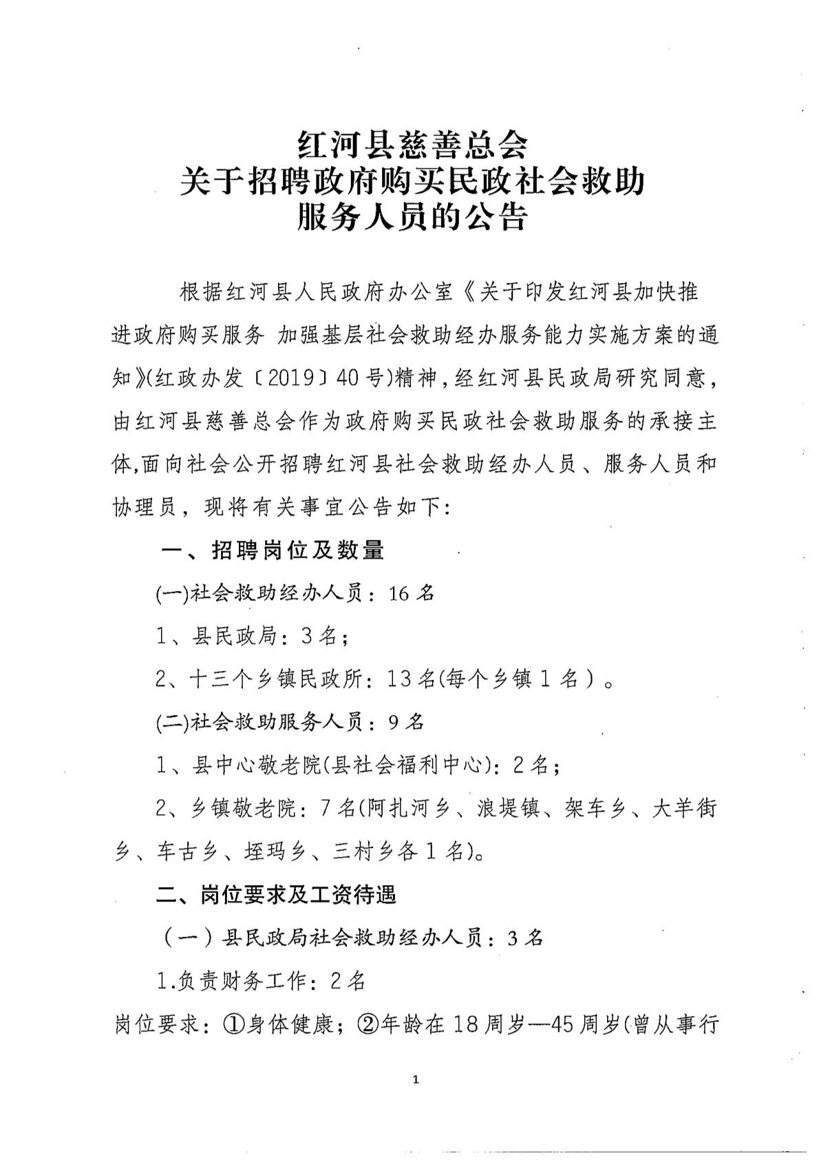 紅河縣慈善總會(huì)關(guān)于招聘政府購(gòu)買民政社會(huì)救助服務(wù)人員的公告