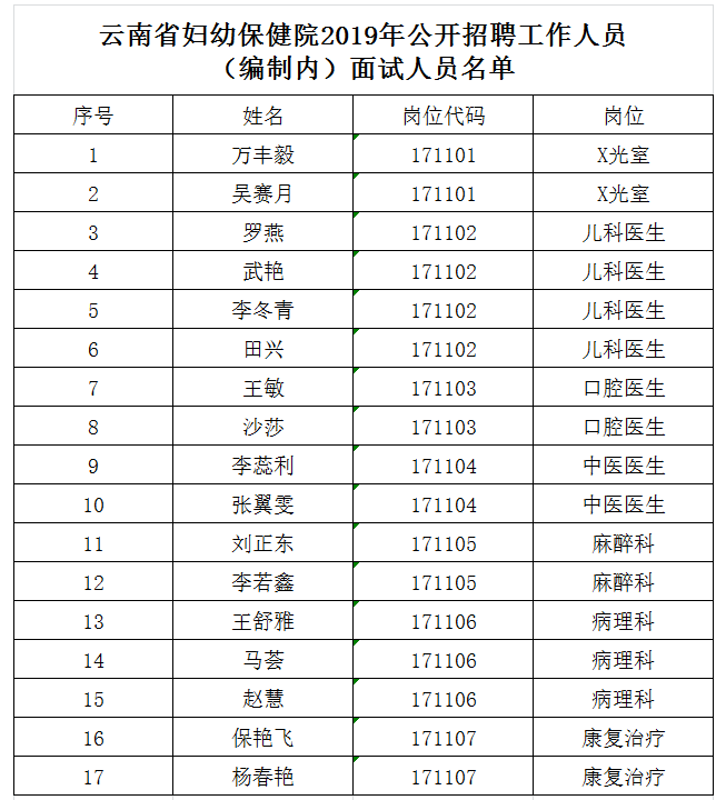云南省婦幼保健院關(guān)于2019年公開(kāi)招聘工作人員(編制內(nèi))面試公告