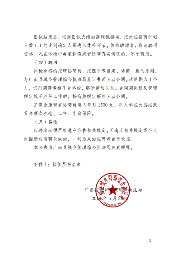 文山州廣南縣城鄉(xiāng)管理綜合執(zhí)法局2019年招聘協(xié)管員公告