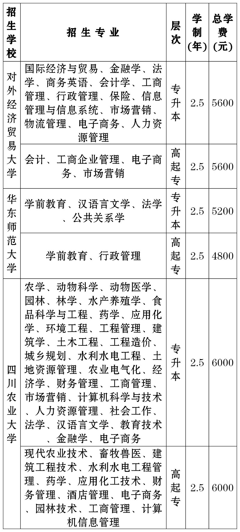 四、招生學(xué)校、專業(yè)、層次、學(xué)制及形式