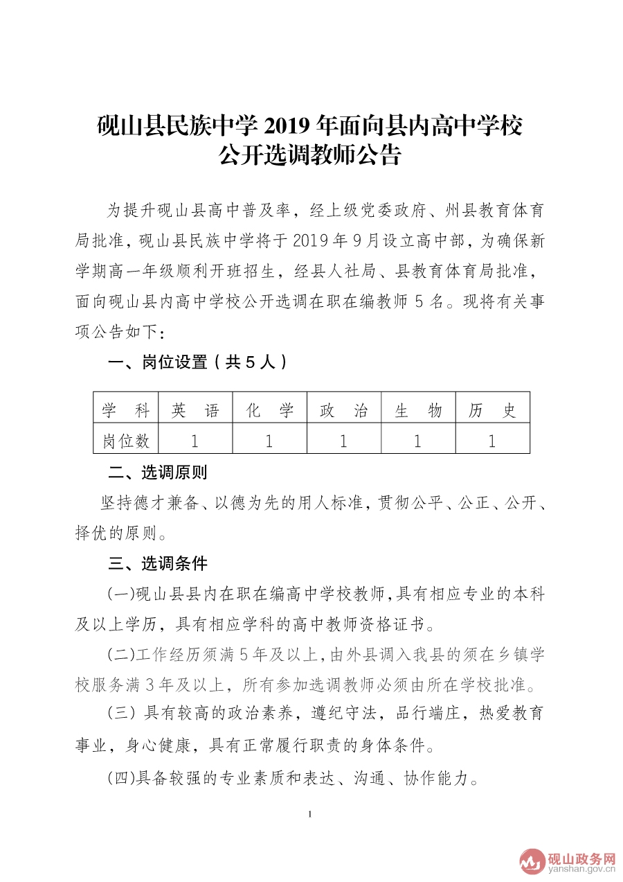 硯山縣民族中學(xué)2019年高中教師招聘公告