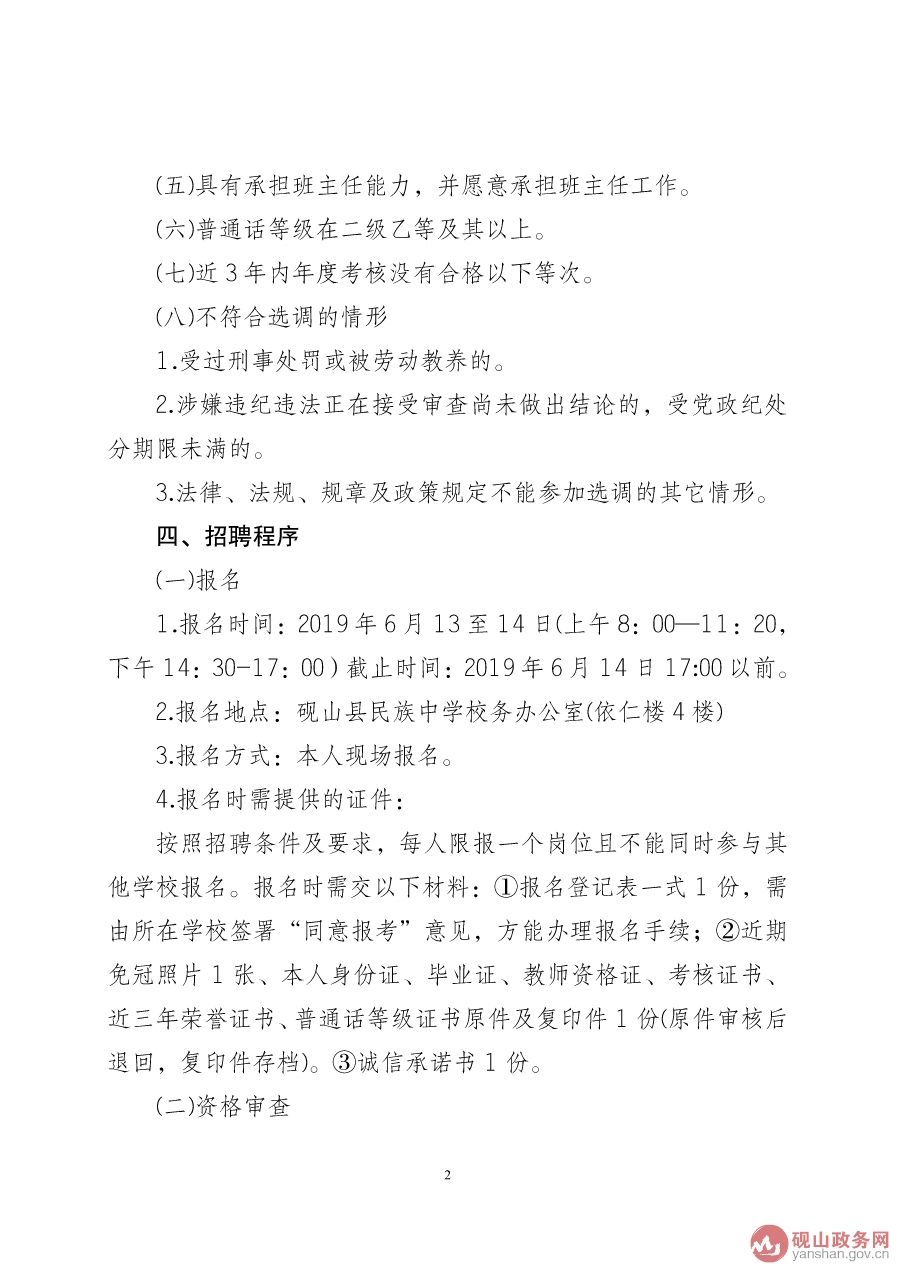 文山州硯山縣民族中學(xué)2019年高中教師招聘公告