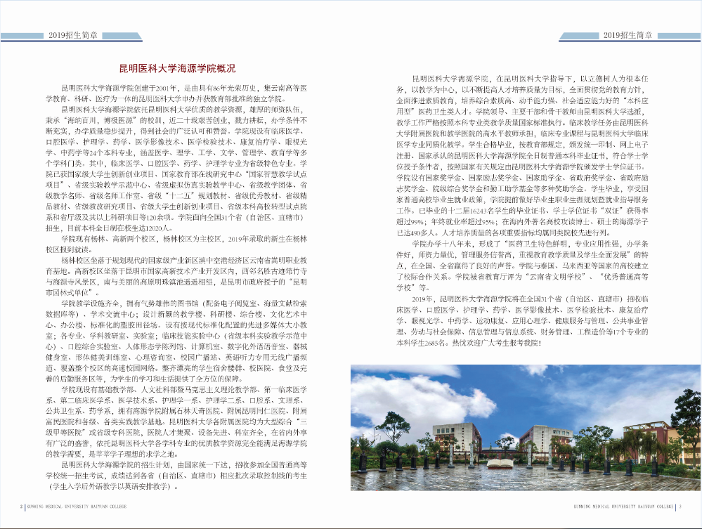 昆明醫(yī)科大學海源學院2019年全日制普通本科招生簡章