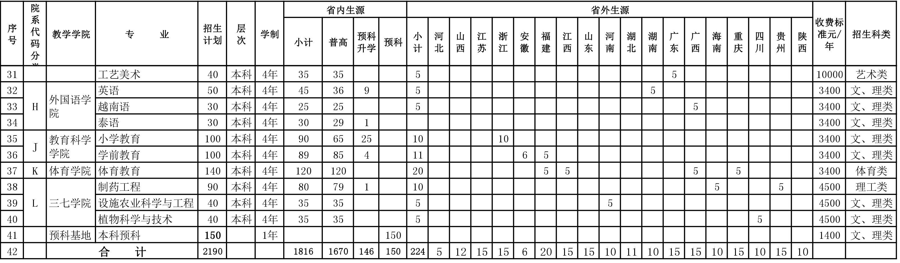 文山學(xué)院2019年本科及專科招生計劃