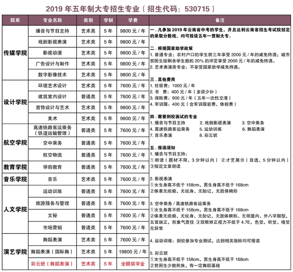 昆明藝術(shù)職業(yè)學(xué)院2019年五年制大專、三年制中專招生簡(jiǎn)章