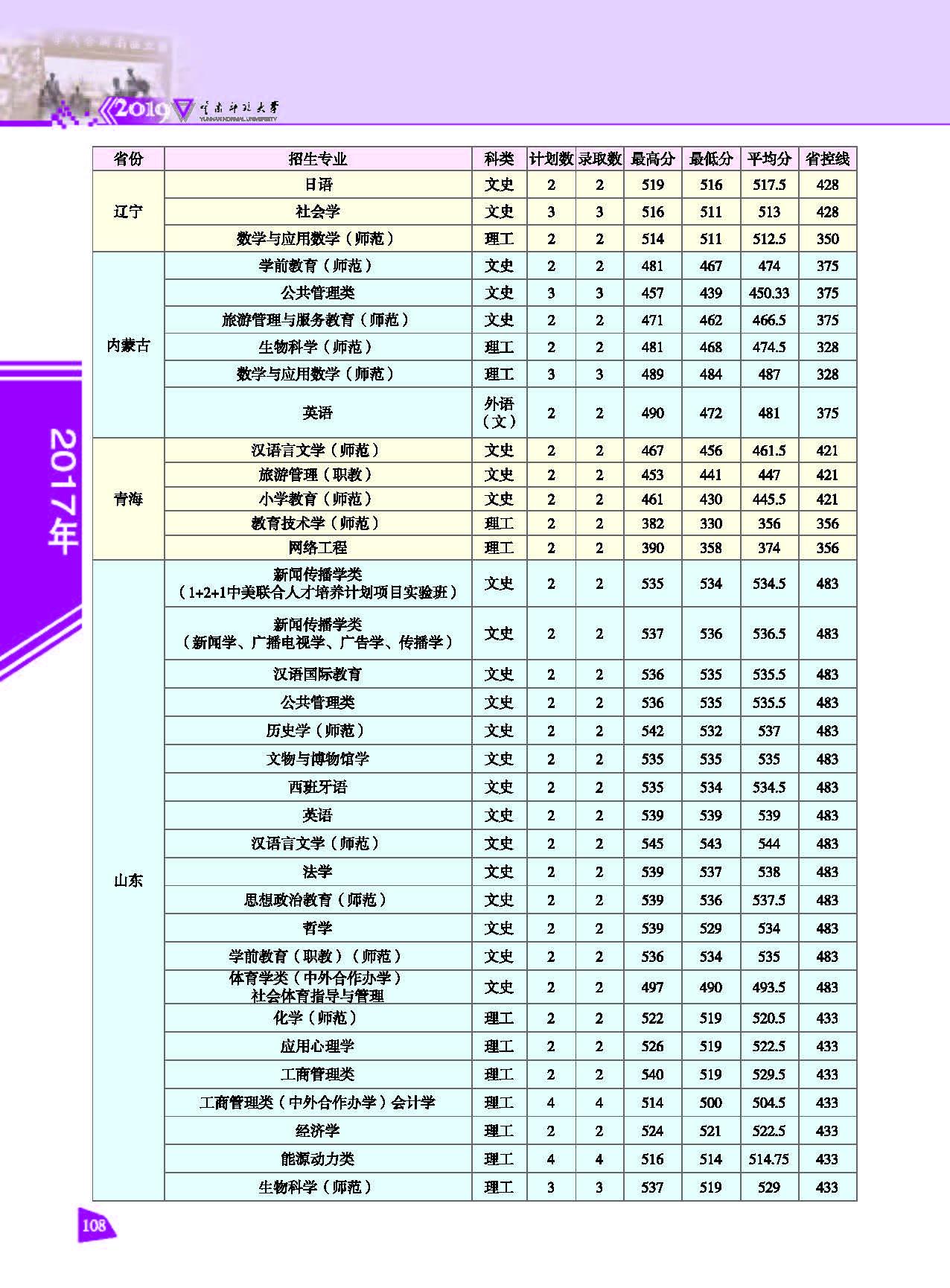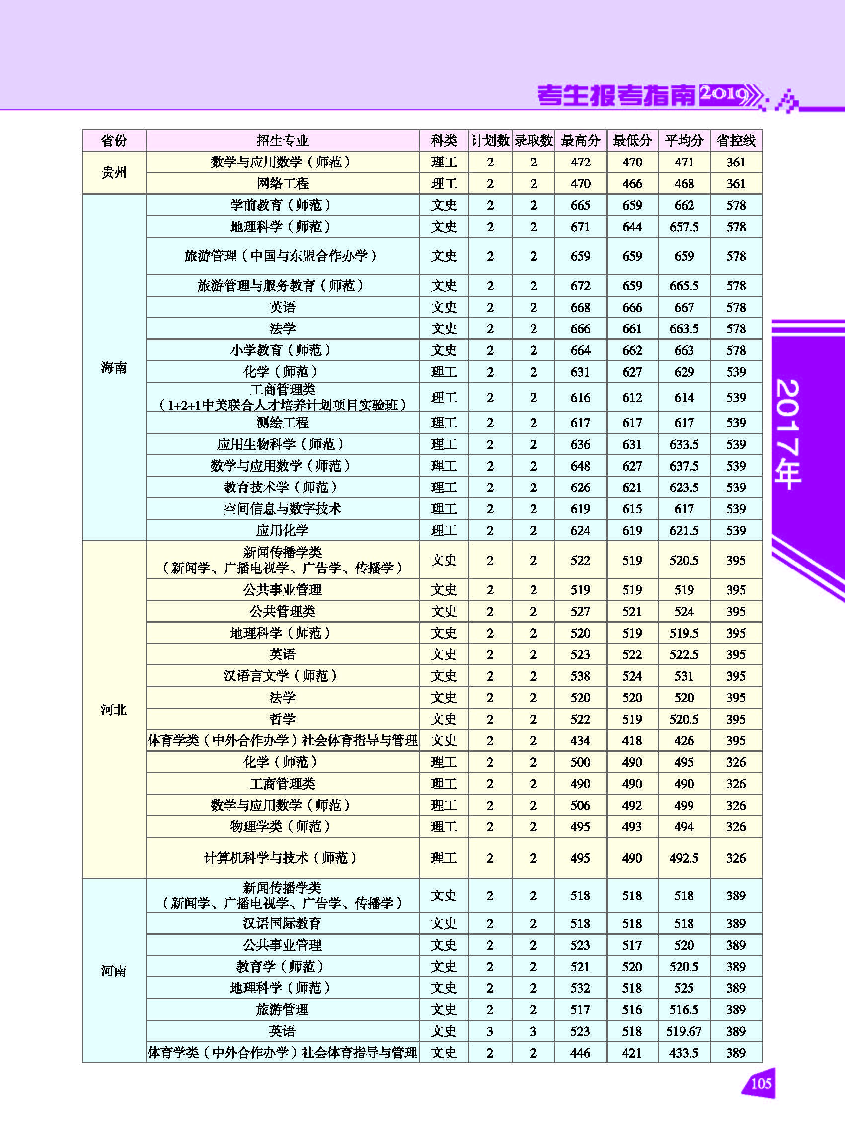 2017年云南師范大學(xué)招生錄取情況一覽表(省外.文史理工)