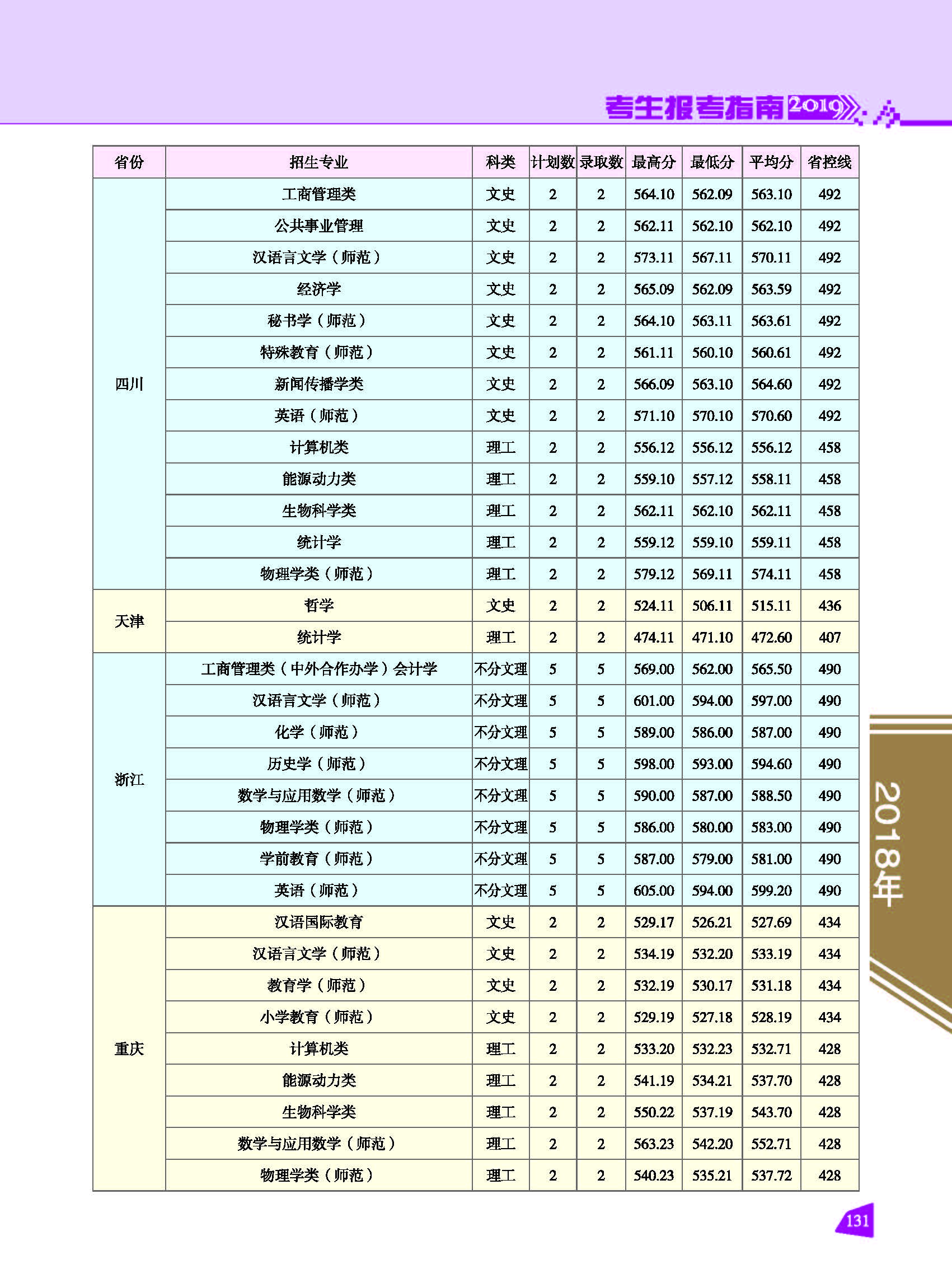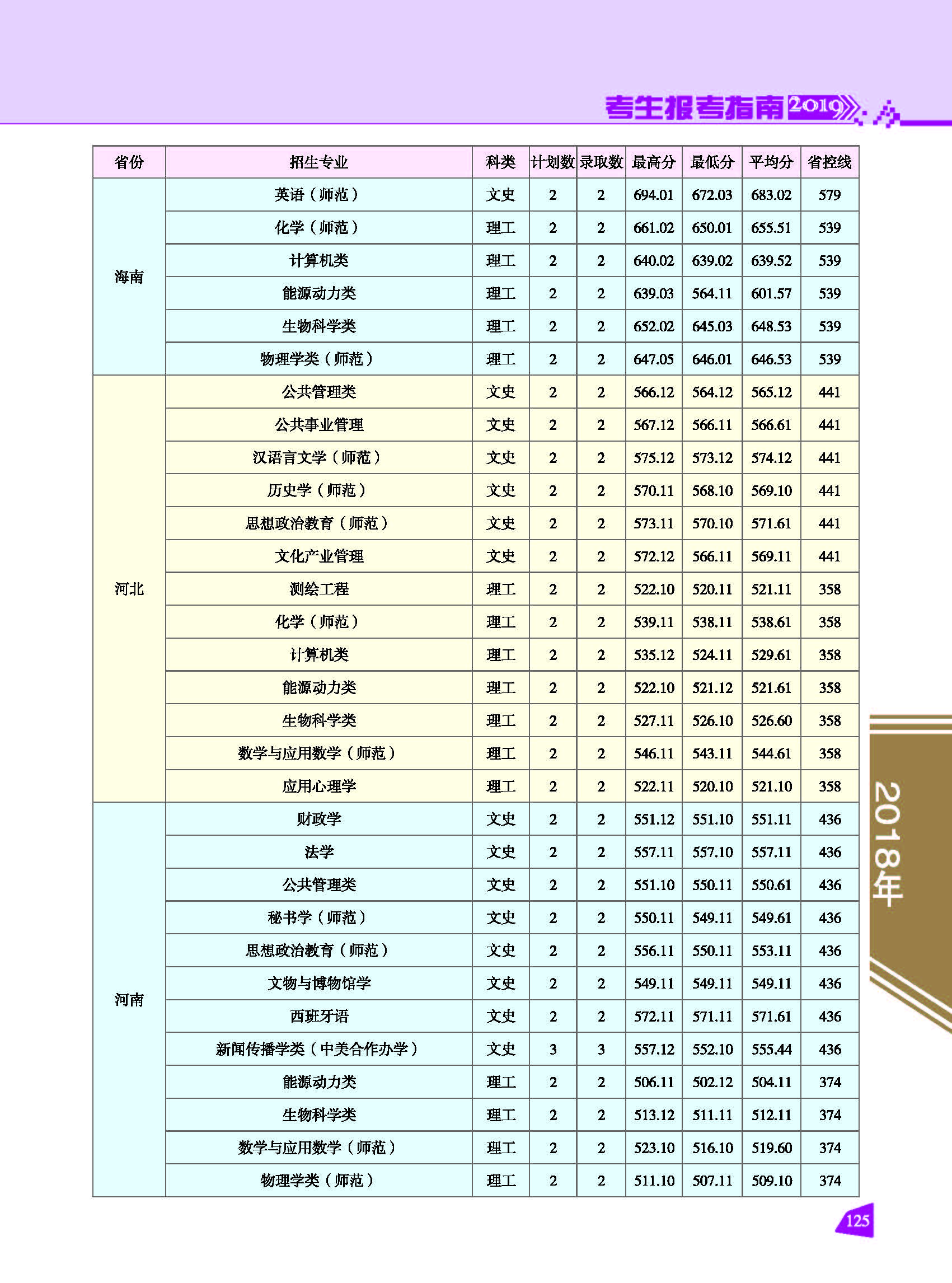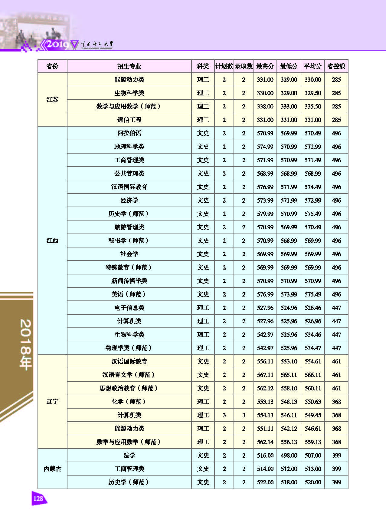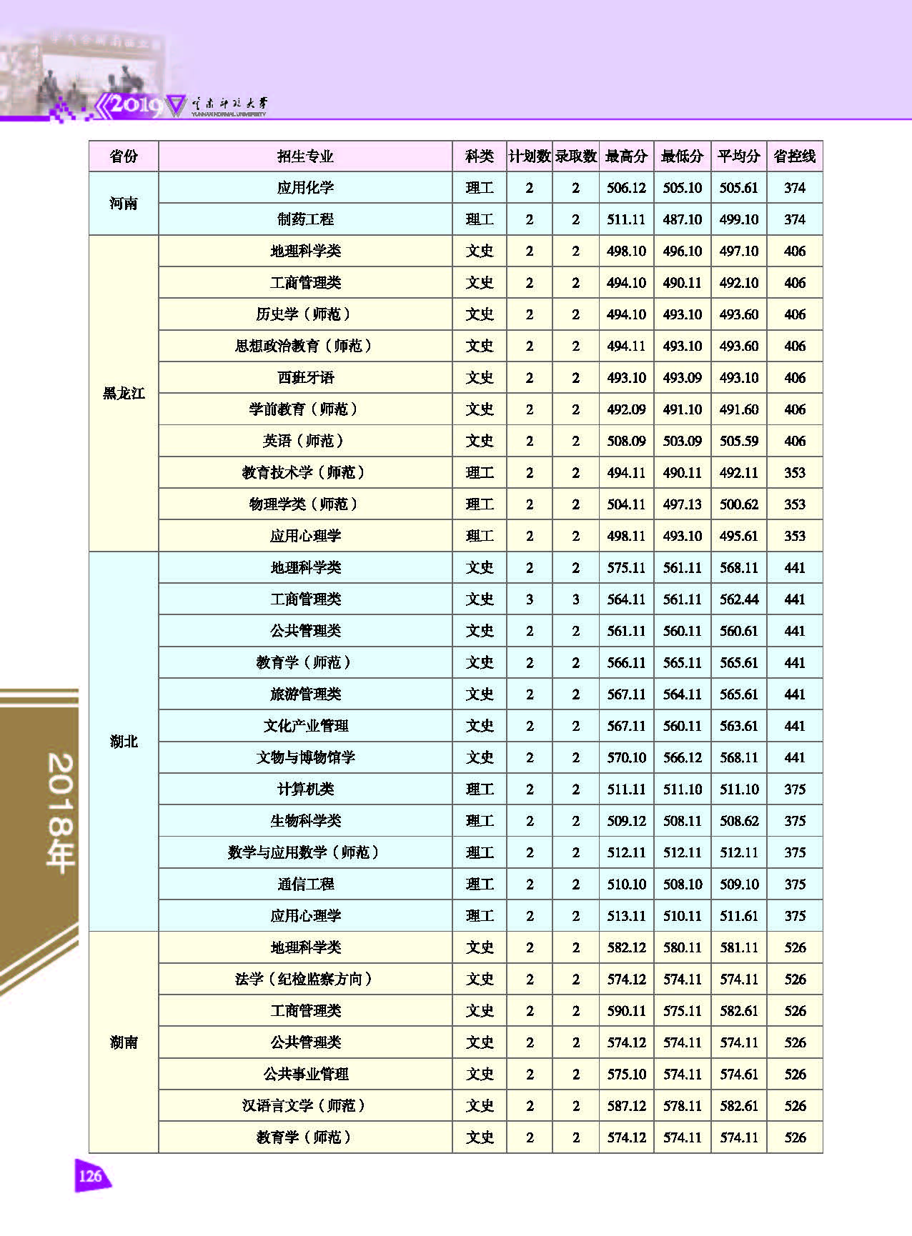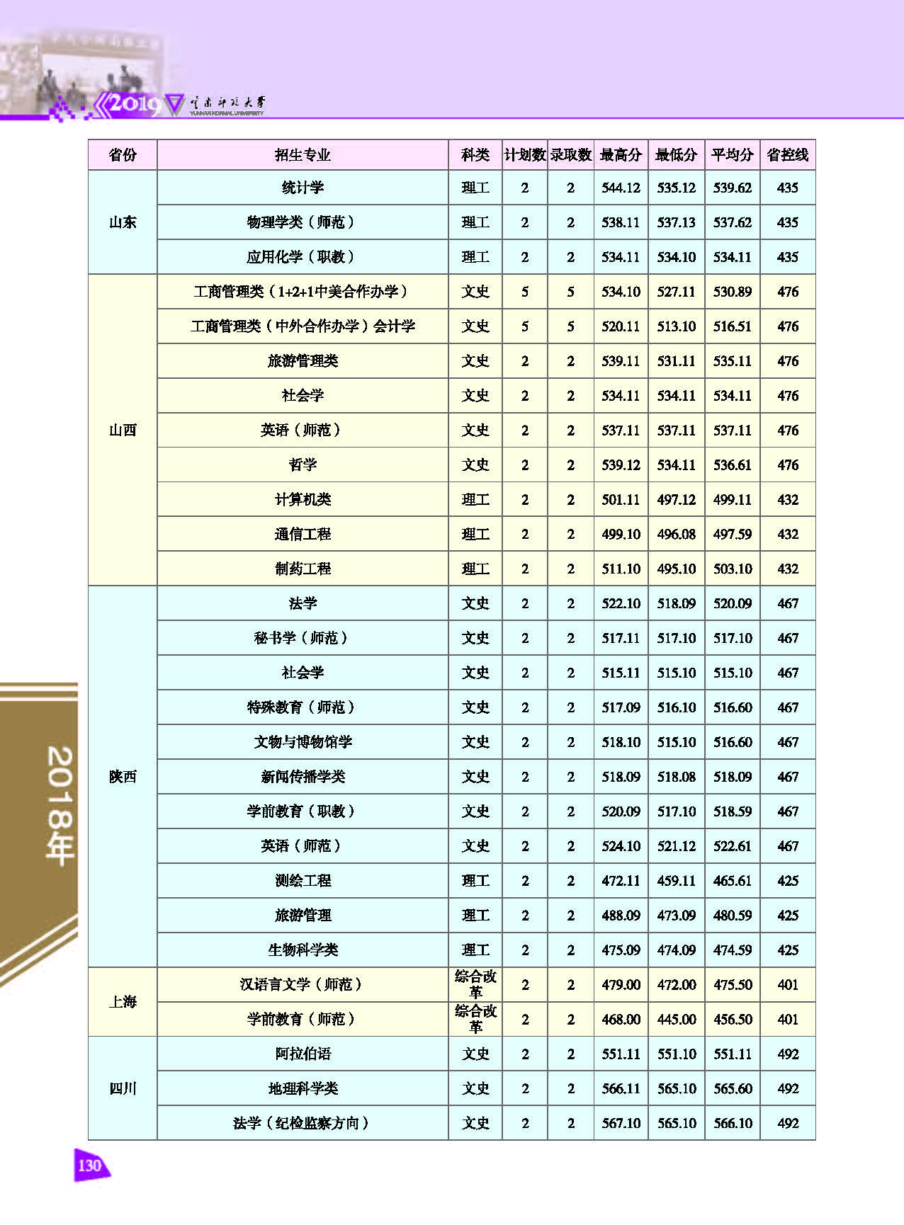2018年云南師范大學(xué)招生錄取情況一覽表(省外.文史理工)