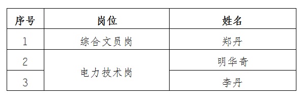 德宏戶宋河發(fā)電有限責任公司聘請第三方專業(yè)機構(gòu)開展2019年人員招聘工作。經(jīng)制定招聘計劃方案、發(fā)布招聘公告、組織考試(筆試面試)、組織體檢、進行考察等環(huán)節(jié),對應(yīng)聘者的專業(yè)、應(yīng)變、溝通表達、創(chuàng)新等能力進行測試,并綜合判斷其工作經(jīng)歷、能力、性格、年齡、學歷等是否與公司需求相匹配。最終僅有4名應(yīng)聘者符合公司需要,其中,綜合文員崗2人,電力技術(shù)崗2人。但因綜合文員崗第一名邱靜考生自愿放棄并提交了本人簽署的《自愿放棄聘用崗位的情況說明》,公司最終確定3名擬錄用人員?,F(xiàn)將擬聘用人員名單公示如下: