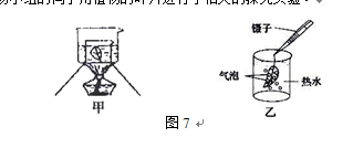 ① 圖7甲所示的是綠葉在光下制造有機(jī)物實(shí)驗(yàn)中的一個(gè)裝置,該裝置在本實(shí)驗(yàn)中的作用是 。