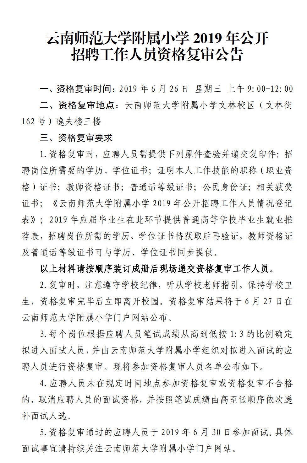 云南師范大學(xué)附屬小學(xué)2019年招聘資格復(fù)審公告