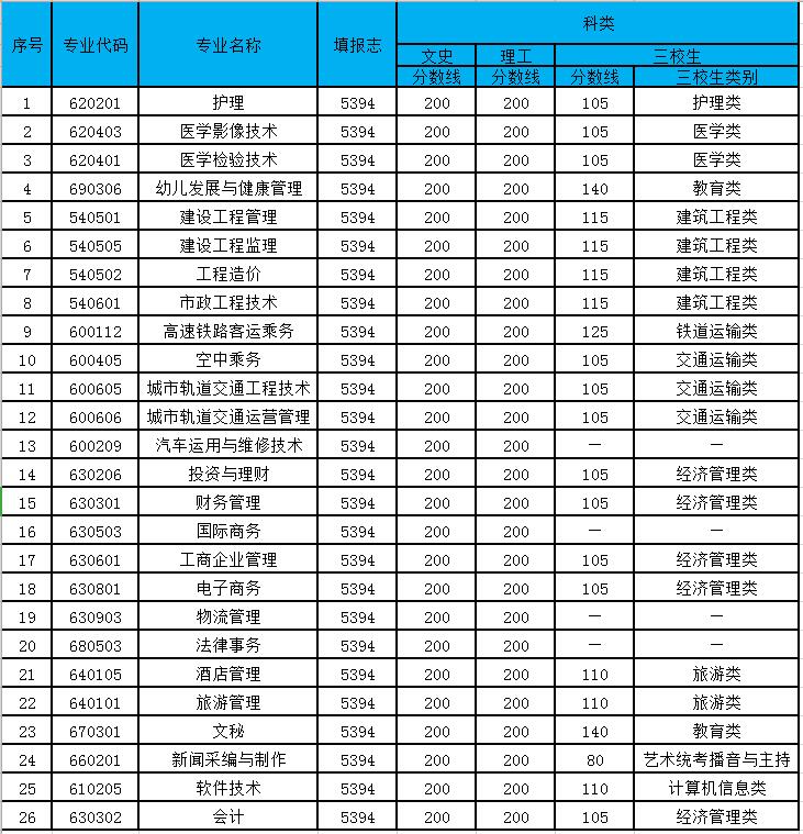 2019年云南商務(wù)職業(yè)學(xué)院普通大專招生專業(yè)最低分?jǐn)?shù)控制線