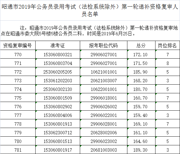 昭通市2019年公務(wù)員錄用考試(法檢系統(tǒng)除外)第一輪遞補(bǔ)資格復(fù)審人員名單
