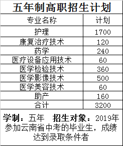 2019年昆明衛(wèi)生職業(yè)學(xué)院招生計劃