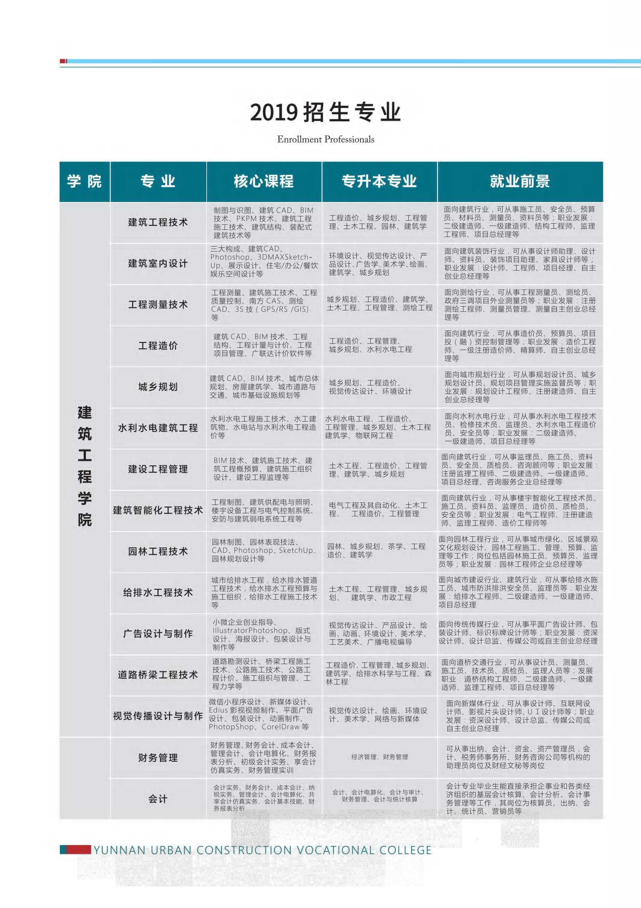 2019年云南城市建設(shè)職業(yè)學(xué)院招生專業(yè)
