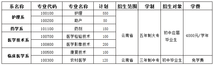 注:最終執(zhí)行的招生計劃,以云南省教育廳正式公布為準。(五年制大專招生代碼:530750;中專招生代碼:530518)